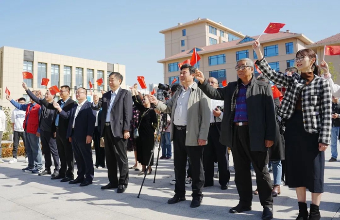 典禮開始前,明月海藻集團的員工代表和來自新區(qū)青少年活動中心的孩子們,以一曲《我和我的祖國》快閃表演營造了熱烈的氛圍。現場紅歌嘹亮,余音繞梁,表演者們以飽滿深情的紅歌演唱表達對祖國的愛,祝福祖國繁榮富強。