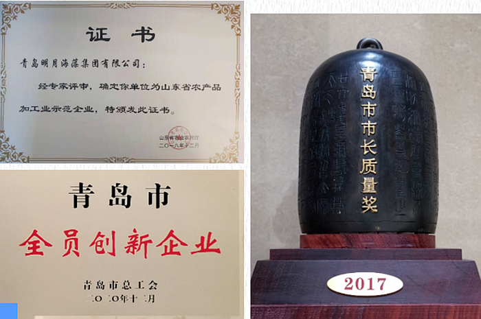 質(zhì)量興企,質(zhì)量強(qiáng)企。經(jīng)過持之以恒的奮斗和努力,明月海藻集團(tuán)榮獲國家制造業(yè)單項(xiàng)冠軍企業(yè)、山東省農(nóng)產(chǎn)品加工示范企業(yè)、青島市市長質(zhì)量獎、青島市全員創(chuàng)新企業(yè)等多項(xiàng)榮譽(yù),企業(yè)邁向了高質(zhì)量發(fā)展之路。