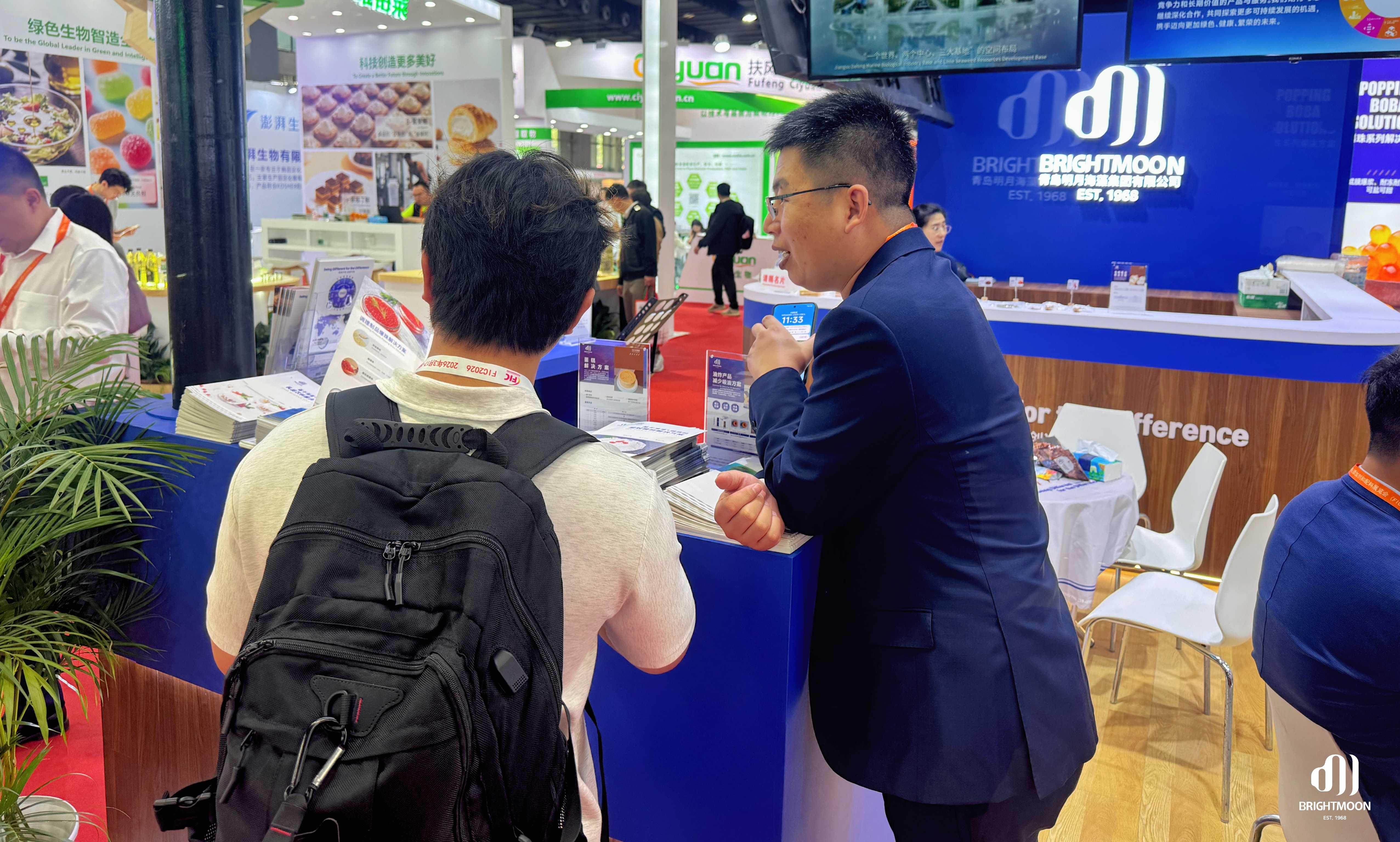 展會期間,明月展位始終熱度不減。專業(yè)團隊以產(chǎn)品展示、技術(shù)交流和場景化示范,向現(xiàn)場觀眾集中呈現(xiàn)“海藻功能原料×食品創(chuàng)新”的前沿趨勢,吸引了大量行業(yè)伙伴駐足探討,共同尋找下一代食品創(chuàng)新方向。