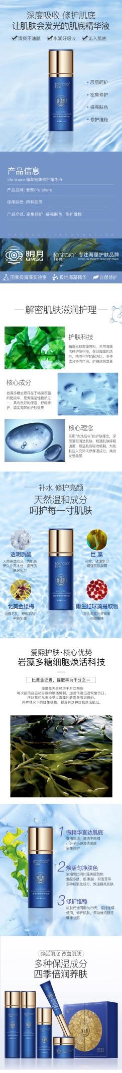 產(chǎn)品介紹:突破海藻活粹源護膚科技,專利性濃縮深海珍藻精華,匯聚天然水潤護膚精華,形成天然肌膚強韌屏障,補水鎖水,刺激膠原重塑,煥活肌膚強大美力。